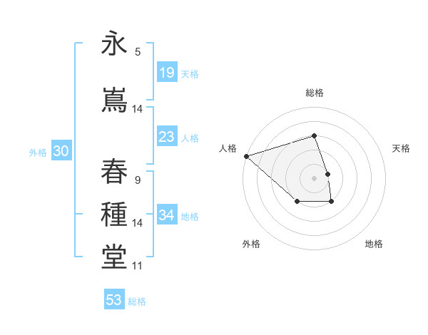 永嶌 春種堂さんを姓名の画数から五運を鑑定