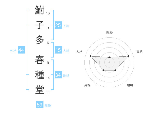 鮒子多 春種堂さんを姓名の画数から五運を鑑定