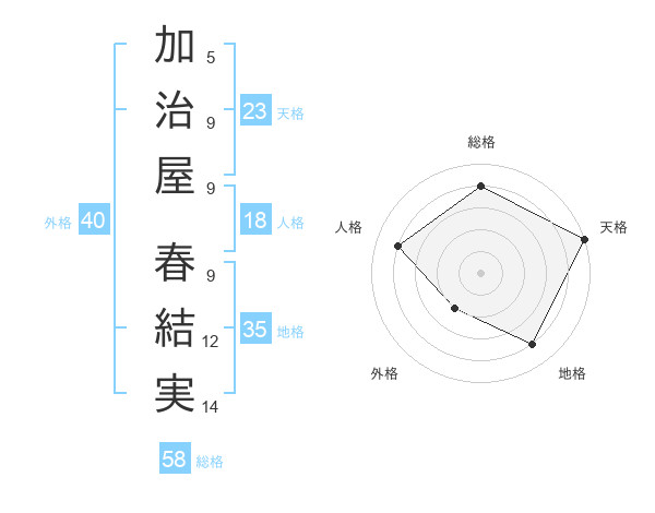 加治屋 春結実さんを姓名の画数から五運を鑑定