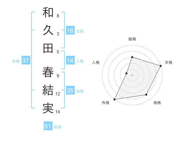 和久田 春結実さんを姓名の画数から五運を鑑定