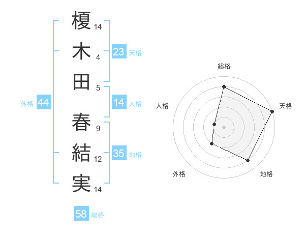 榎木田 春結実さんを姓名の画数から五運を鑑定