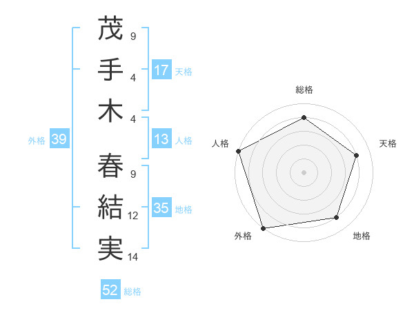 茂手木 春結実さんの総格は52画の4点!