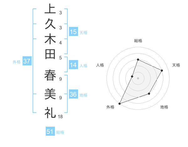 上久木田 春美礼さんを姓名の画数から五運を鑑定