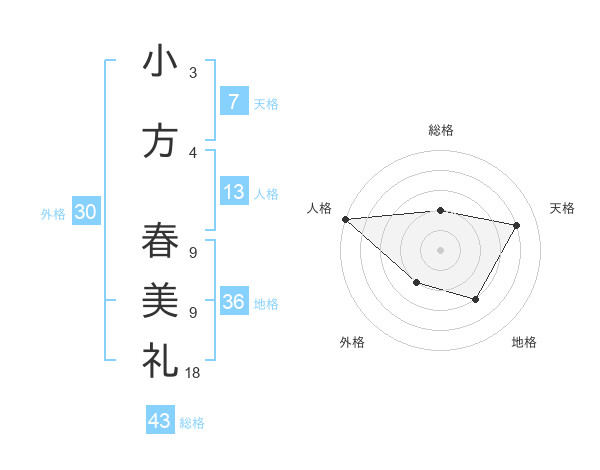 小方 春美礼さんを姓名の画数から五運を鑑定