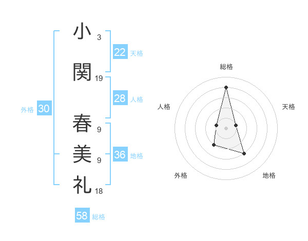 小関 春美礼さんを姓名の画数から五運を鑑定