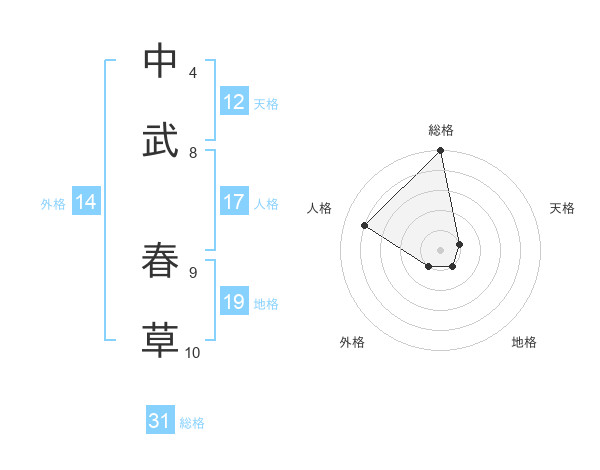 中武 春草さんの総格は31画の5点!