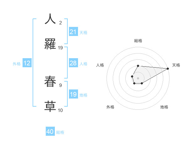 人羅 春草さんの天格は21画の5点!