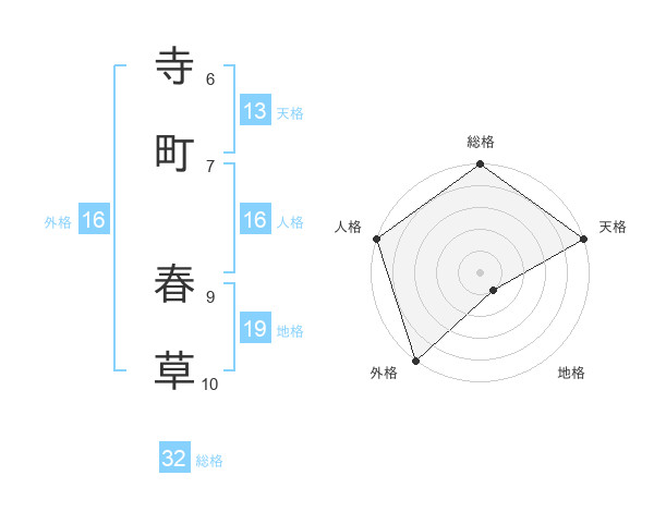 寺町 春草さんの外格は16画の5点!