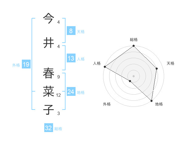 今井 春菜子さんの総格は32画の5点!