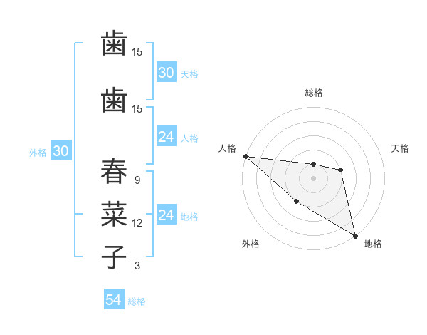 歯歯 春菜子さんを姓名の画数から五運を鑑定