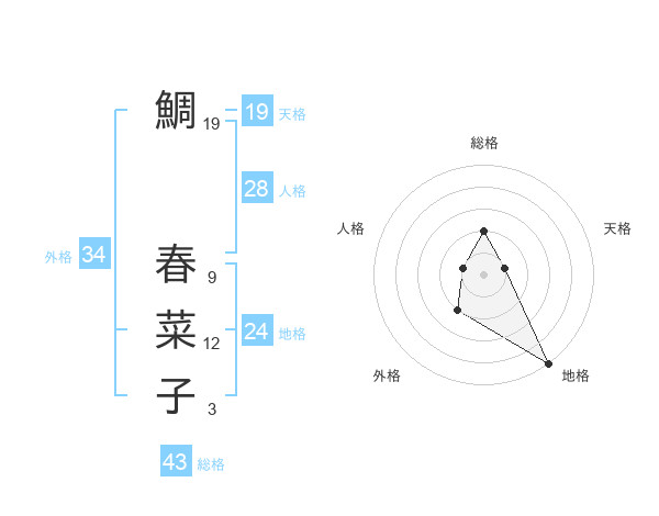 鯛 春菜子さんの総格は43画の2点!