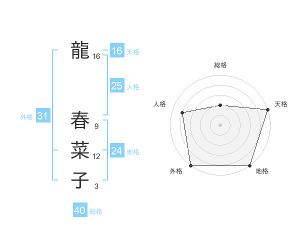 龍 春菜子さんを姓名の画数から五運を鑑定