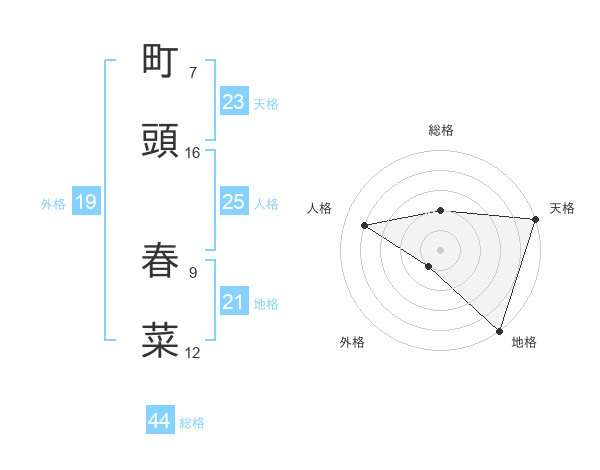 町頭 春菜さんを姓名の画数から五運を鑑定