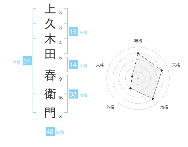 上久木田 春衛門さんを姓名の画数から五運を鑑定