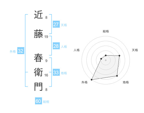 近藤 春衛門さんを姓名の画数から五運を鑑定