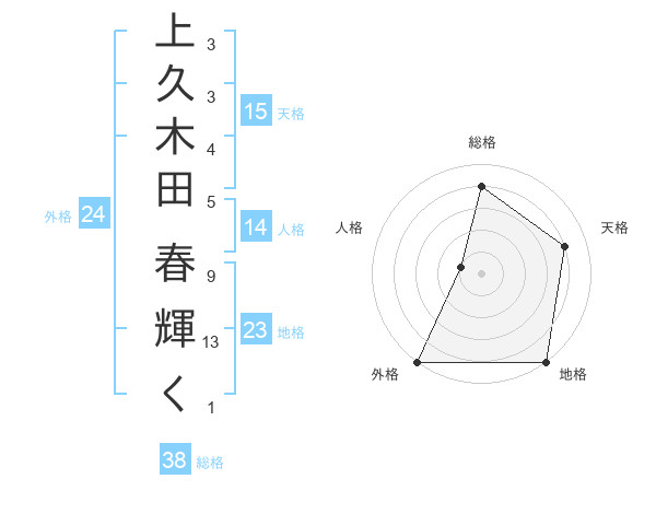 上久木田 春輝くさんの総格は38画の4点!