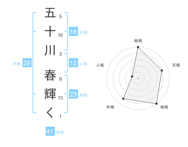 五十川 春輝くさんを姓名の画数から五運を鑑定