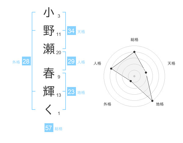 小野瀬 春輝くさんを姓名の画数から五運を鑑定