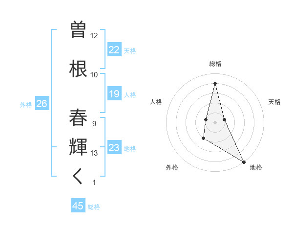 曽根 春輝くさんの総格は45画の4点!