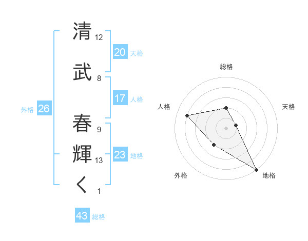 清武 春輝くさんを姓名の画数から五運を鑑定