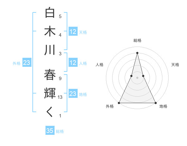 白木川 春輝くさんの地格は23画の5点!