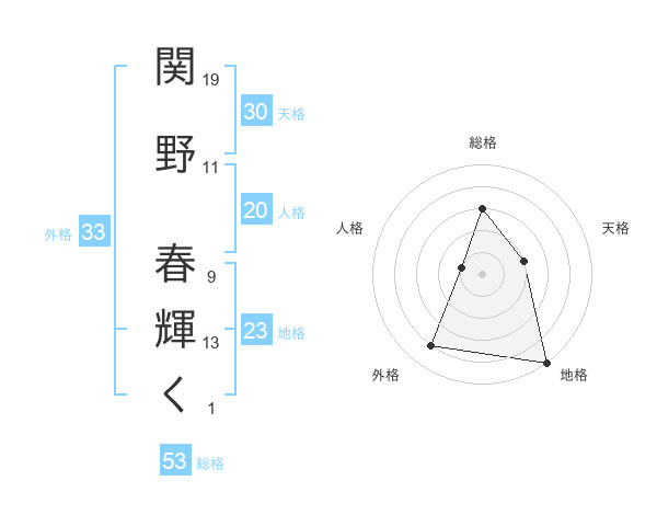 関野 春輝くさんを姓名の画数から五運を鑑定