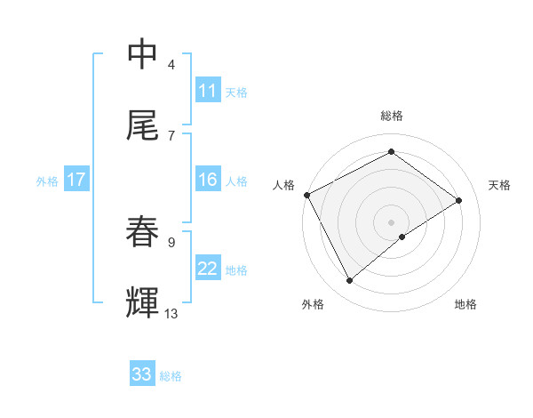 中尾 春輝さんの総格は33画の4点!