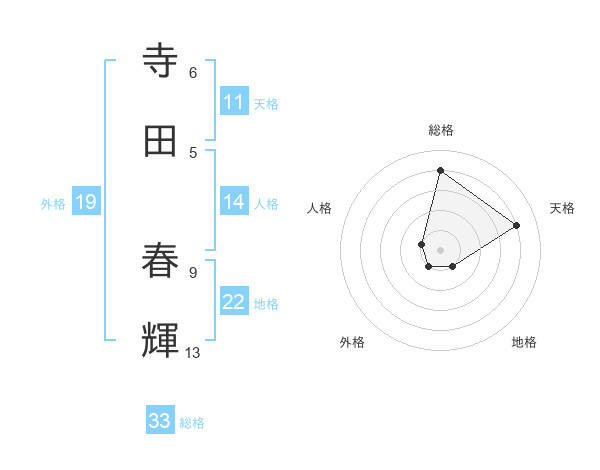 寺田 春輝さんを姓名の画数から五運を鑑定