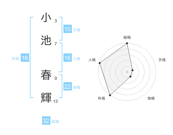 小池 春輝さんの総格は32画の5点!