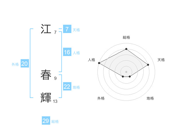 江 春輝さんの総格は29画の4点!