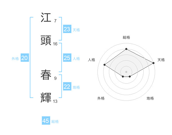 江頭 春輝さんを姓名の画数から五運を鑑定