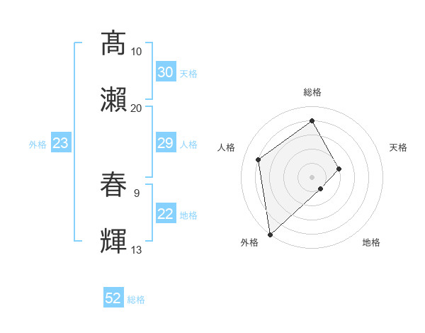 髙瀨 春輝さんの外格は23画の5点!