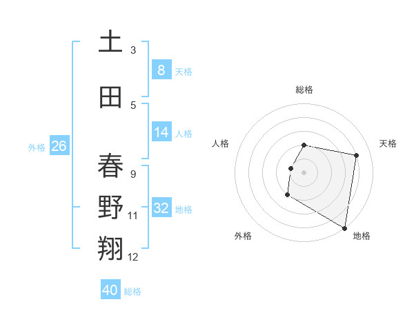 土田 春野翔さんの総格は40画の2点