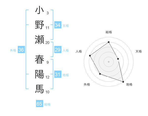 小野瀬 春陽馬さんを姓名の画数から五運を鑑定