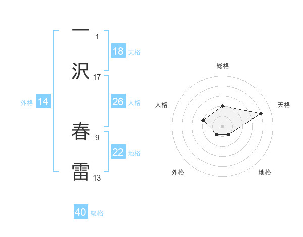 一沢 春雷さんの総格は40画の2点!