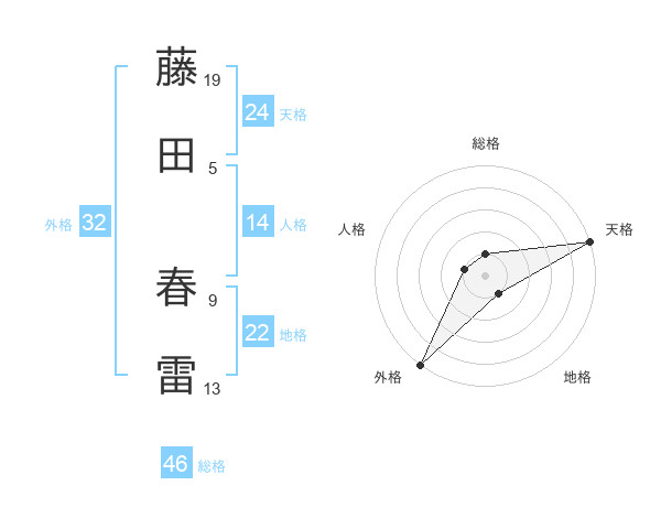 藤田 春雷さんを姓名の画数から五運を鑑定