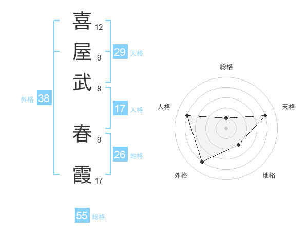 喜屋武 春霞さんの外格は38画の4点!