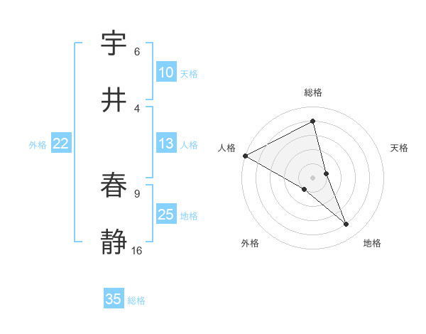 宇井 春静さんの総格は35画の4点!