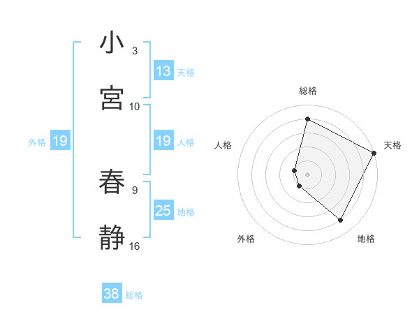 小宮 春静さんの総格は38画の4点!