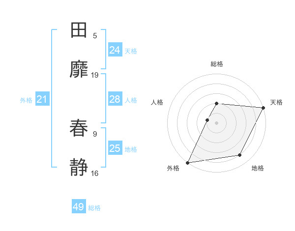 田靡 春静さんの外格は21画の5点!