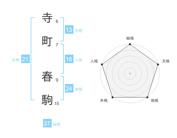寺町 春駒さんの総格は37画の5点!