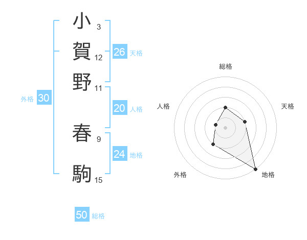 小賀野 春駒さんの総格は50画の2点!