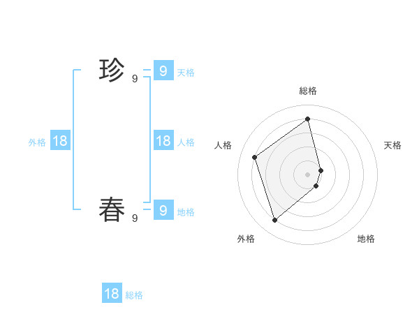 珍 春さんの総格は18画の4点!
