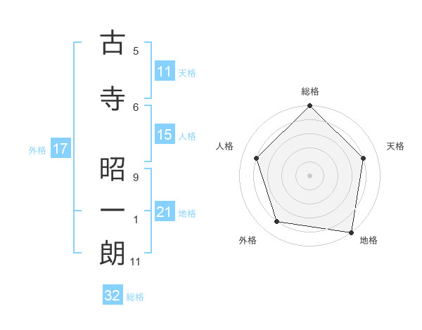 古寺 昭一朗さんの総格は32画の5点!