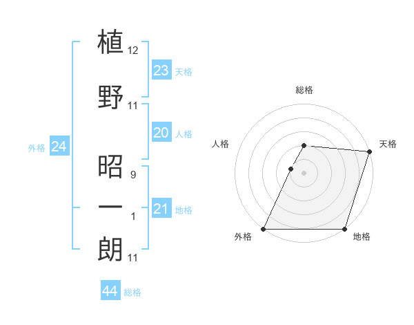 植野 昭一朗さんの総格は44画の2点!