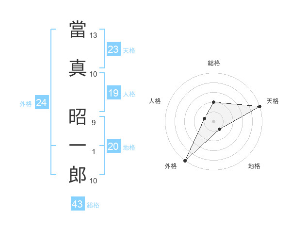 當真 昭一郎さんを姓名の画数から五運を鑑定