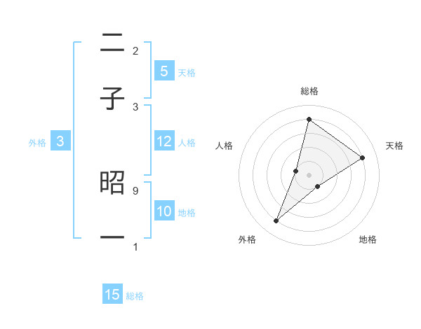 二子 昭一さんの総格は15画の4点!