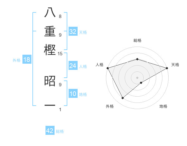 八重樫 昭一さんを姓名の画数から五運を鑑定