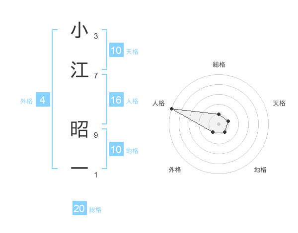 小江 昭一さんの天格は10画の1点!