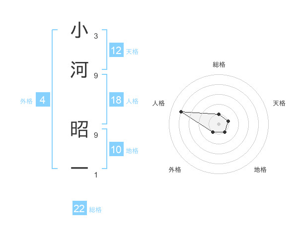 小河 昭一さんの総格は22画の1点!